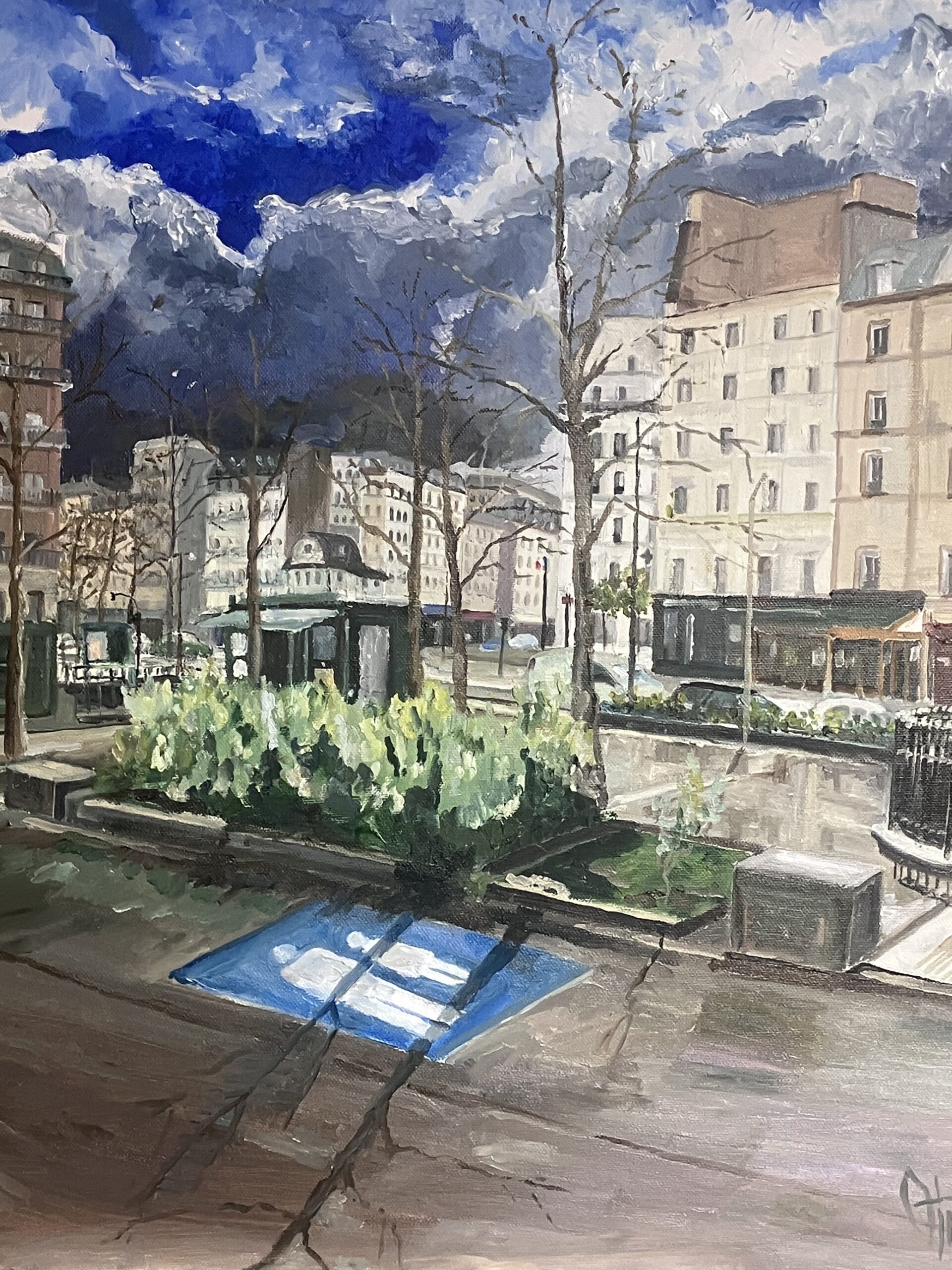 Faubourg St Antoine après la pluie 60×50, oil on canvas, 2025