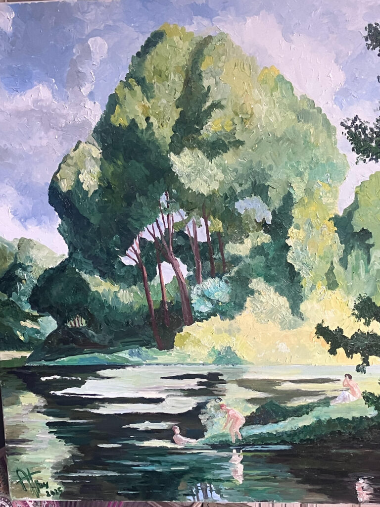 La baignade dans le petit bras. Hommage à Maximilien Luce 50×60, oil on canvas, 2025