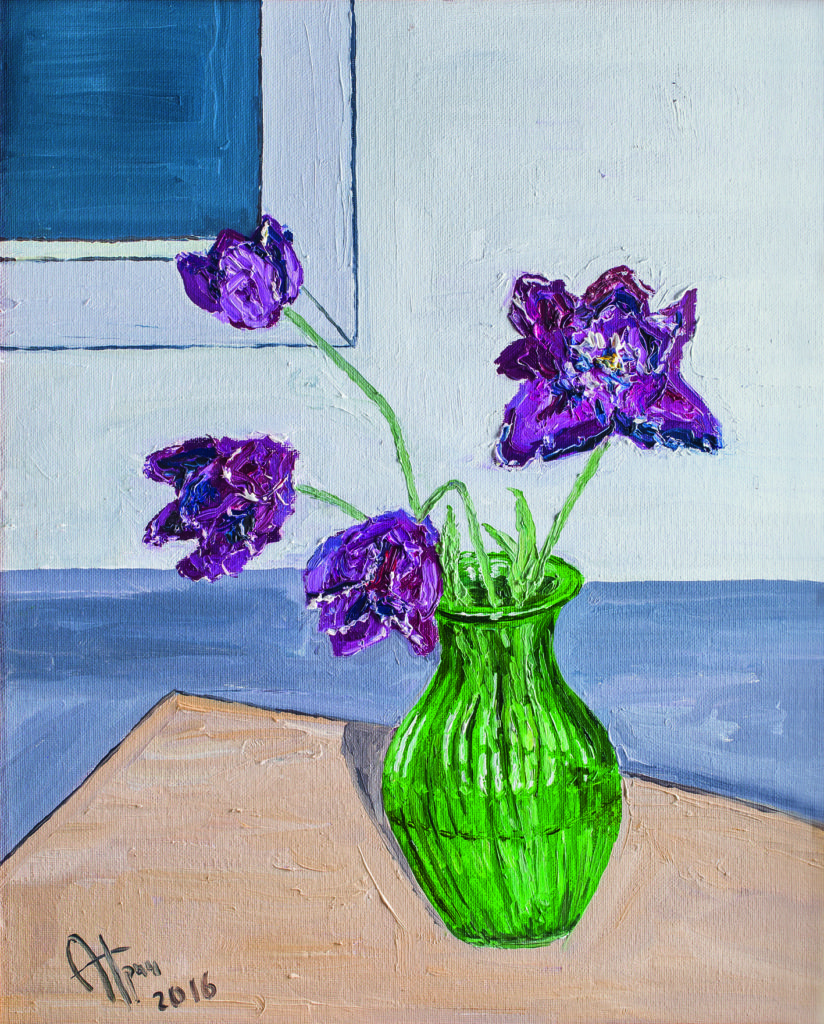 Les tulipes 40×50, oil on cardboard . 2016