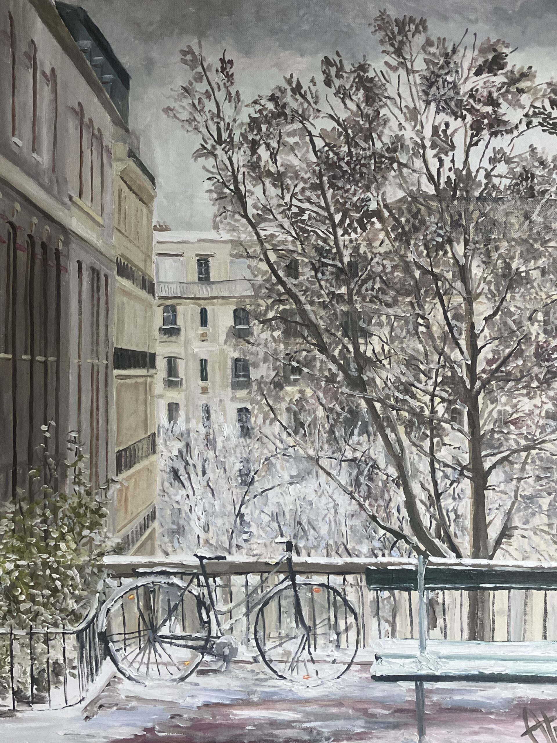 Montmartre Chute de neige 60×50 , oil on canvas, 2025