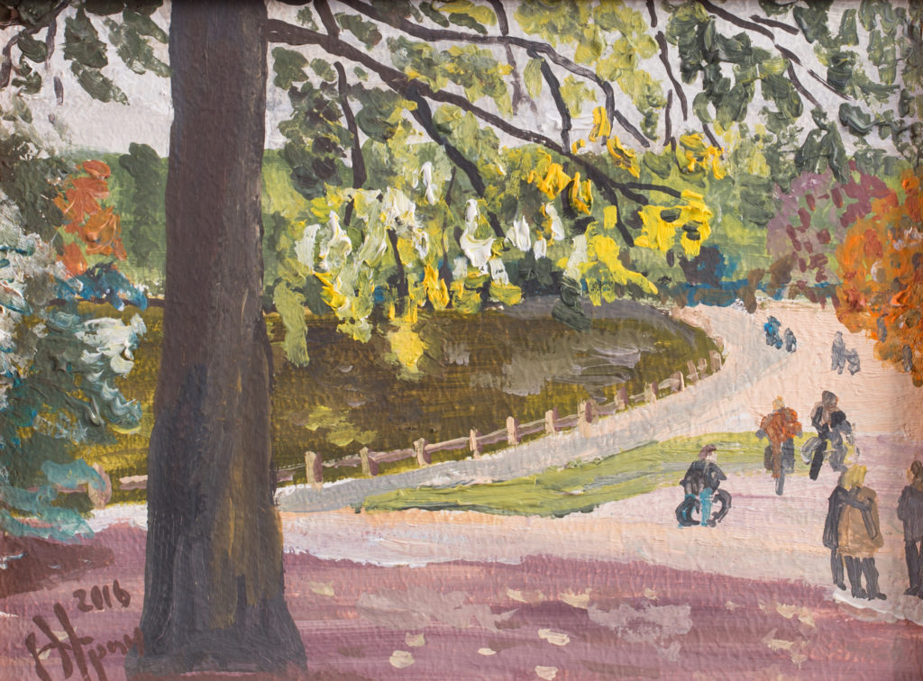 Dans le parc 20×15, oil on cardboard. 2016