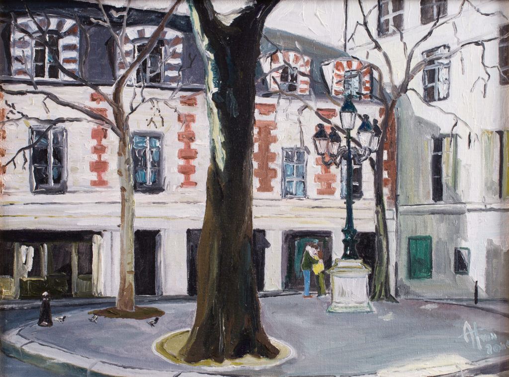 Place de Furstenberg . Les amoureux 30×40, oil on cardboard. 2014