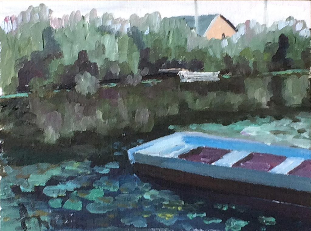 Un bateau bleu 18×24, oil on paperboard. 2017(sold)